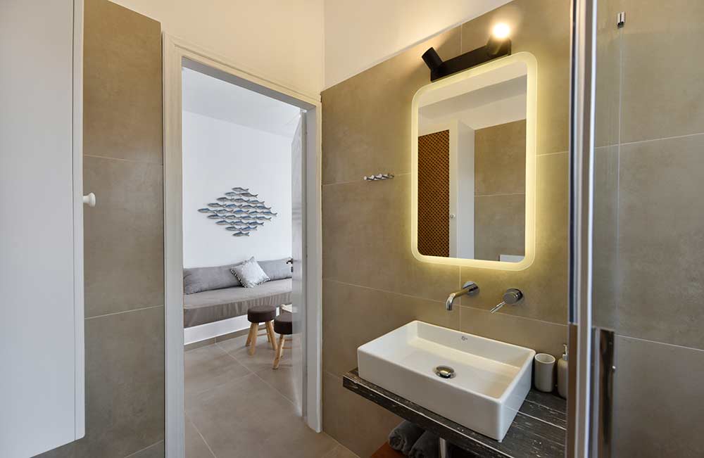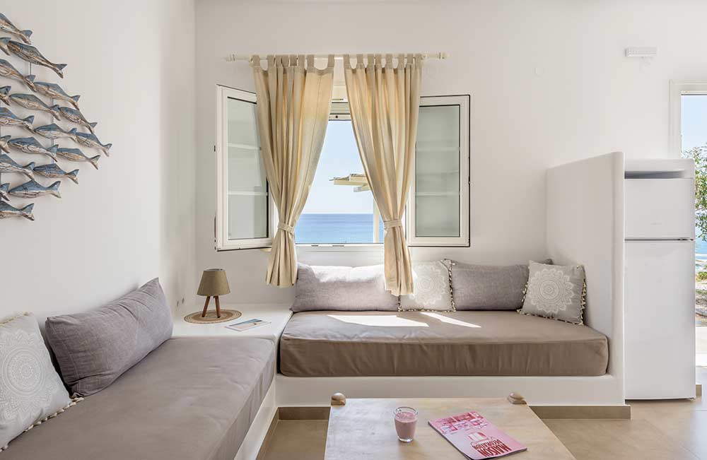 Giourgas Studios and Apartments in Milos consist of two separate buildings surrounded by a green flowery garden. The rooms can accommodate up to 4 persons and have private verandas with vistas to the sea. The large studios and two-room apartments, each with complete kitchenette and with its own veranda, are overlooking the beaches of Provatas and Agios Sostis, only 50m down the rooms, in a magical setting. All rooms are equipped with free wifi, A/C, sat TV, telephone, kitchenette, fridge and bathroom. Baby equipment is available free of charge. Daily maid service, linen is being changed every third night.