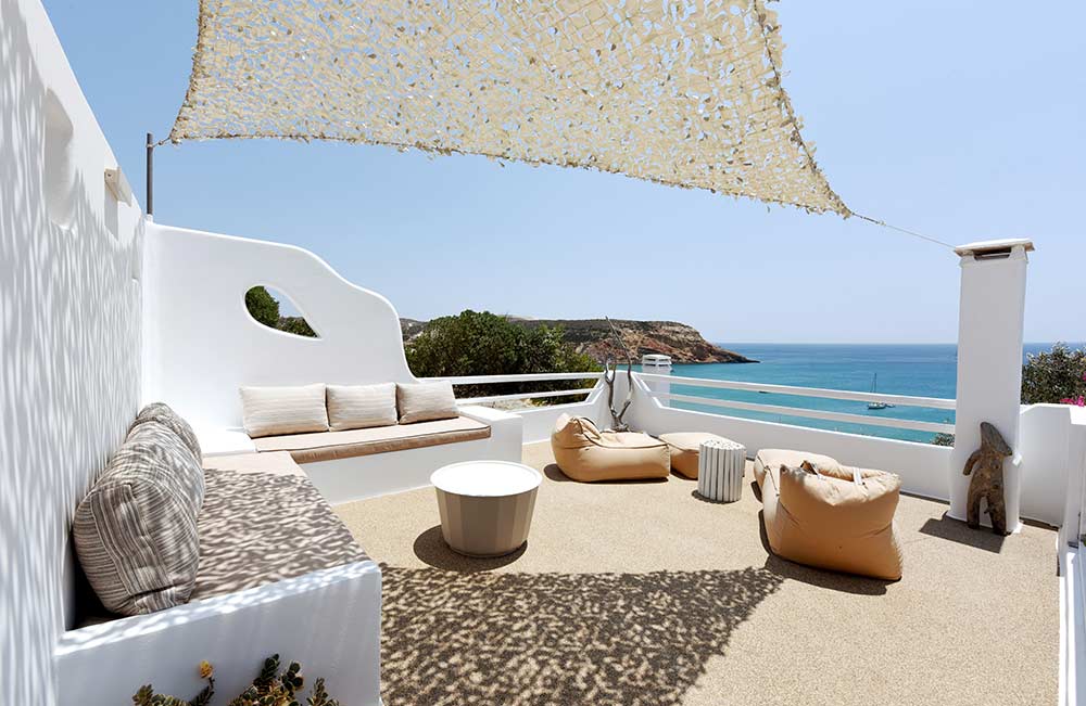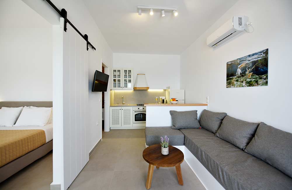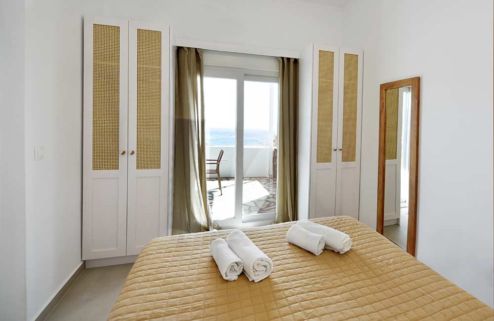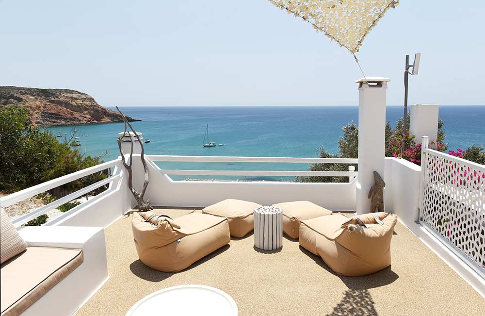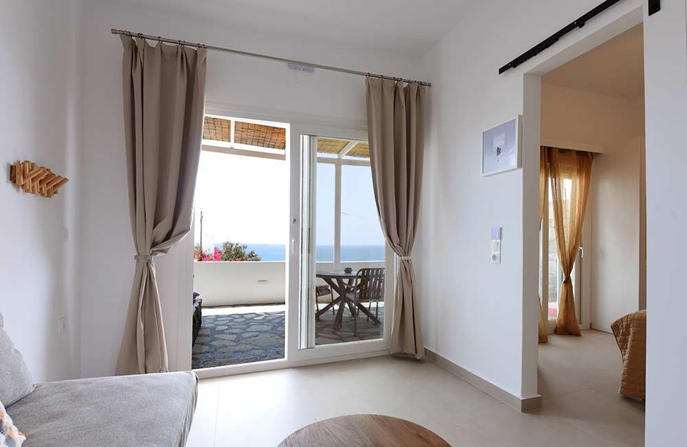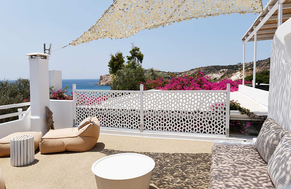 Giourgas Studios and Apartments in Milos consist of two separate buildings surrounded by a green flowery garden. The rooms can accommodate up to 4 persons and have private verandas with vistas to the sea. The large studios and two-room apartments , each with complete kitchenette and with its own veranda, are overlooking the beaches of Provatas and Agios Sostis, only 50m down the rooms, in a magical setting. All rooms are equipped with free wifi, A/C, sat TV, telephone, kitchenette, fridge and bathroom. Baby equipment is available free of charge. Daily maid service, linen is being changed every third night.
