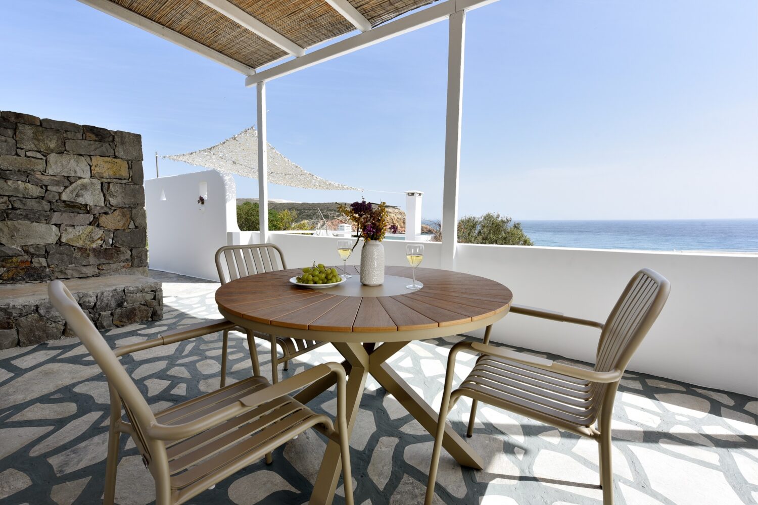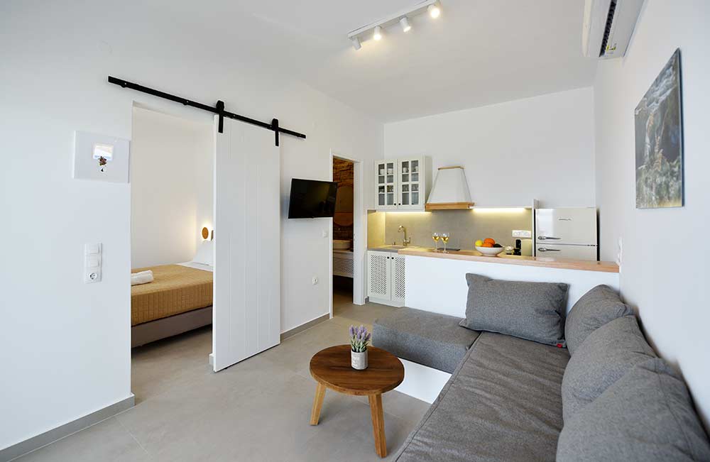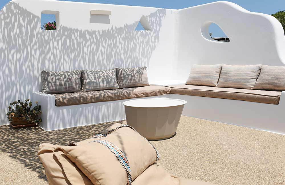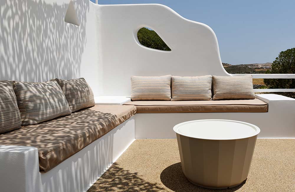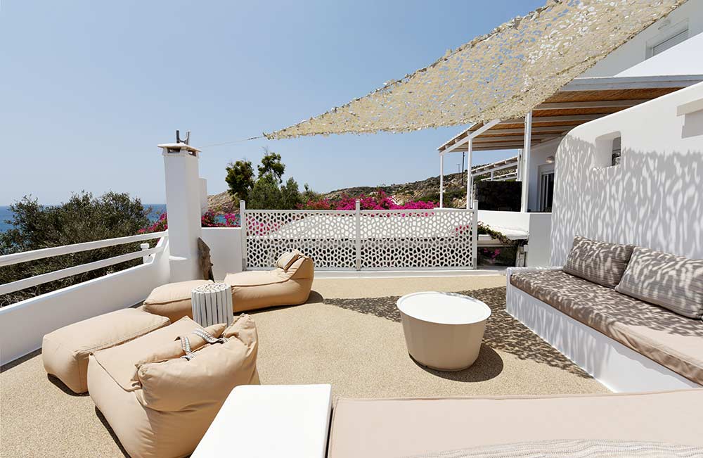 Giourgas Studios and Apartments in Milos consist of two separate buildings surrounded by a green flowery garden. The rooms can accommodate up to 4 persons and have private verandas with vistas to the sea. The large studios and two-room apartments , each with complete kitchenette and with its own veranda, are overlooking the beaches of Provatas and Agios Sostis, only 50m down the rooms, in a magical setting. All rooms are equipped with free wifi, A/C, sat TV, telephone, kitchenette, fridge and bathroom. Baby equipment is available free of charge. Daily maid service, linen is being changed every third night.